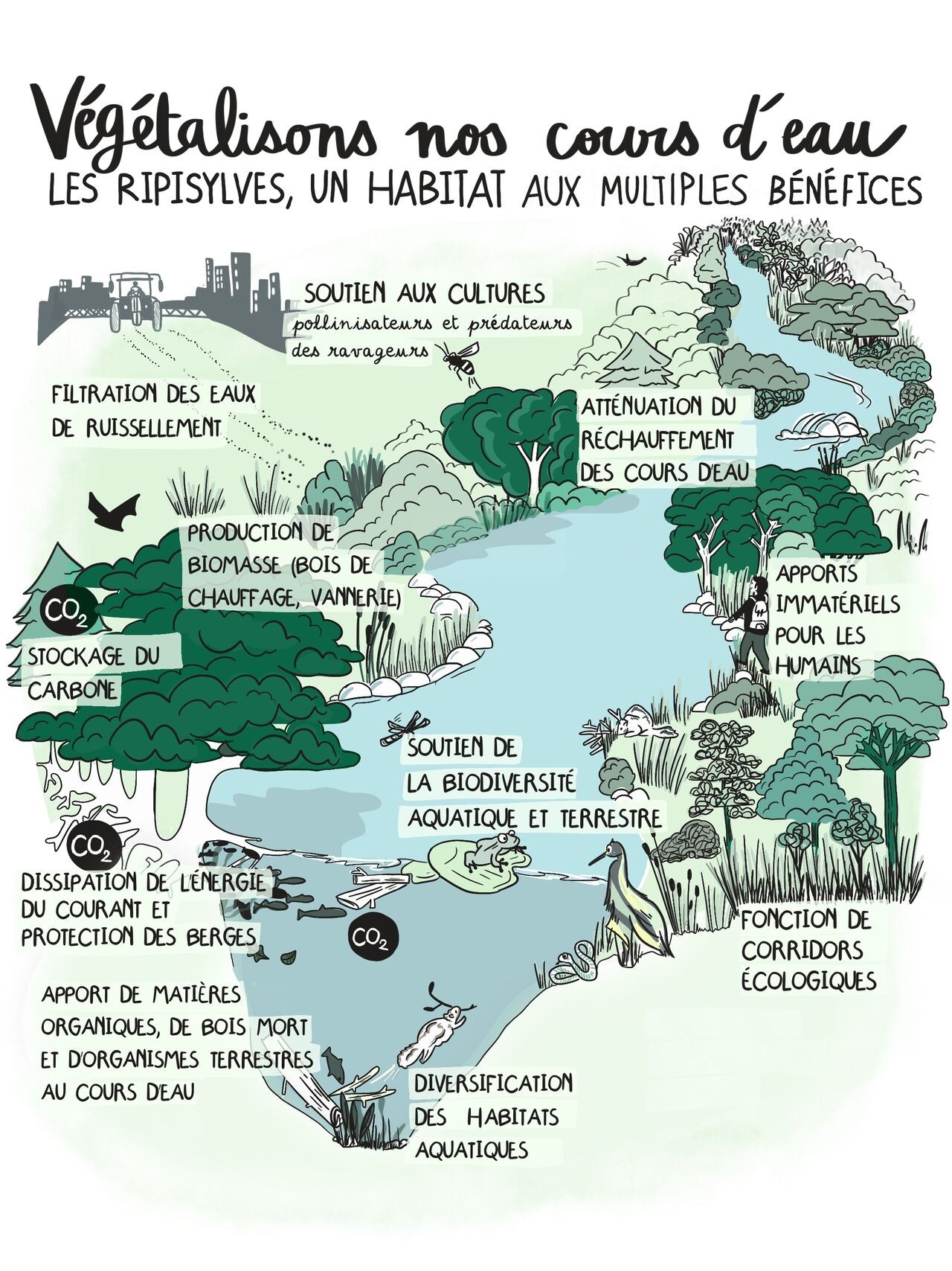 Qu’est-ce qu’une espèce exotique envahissante ? Il s’agit d’une espèce importée (animale ou végétale), volontairement ou non, d’une partie du globe vers une autre où elle n’était pas naturellement présente. Débarrassée de ses prédateurs naturels, elle parvient parfois à prospérer dans son lieu d’accueil, modifiant ainsi les écosystèmes existants. Les espèces envahissantes (ou invasives) déséquilibrent les milieux aquatiques et le bon fonctionnement des cours d’eau. Afin de lutter contre ces déséquilibres, Lien vers plus d’infos sur les plantes invasives.