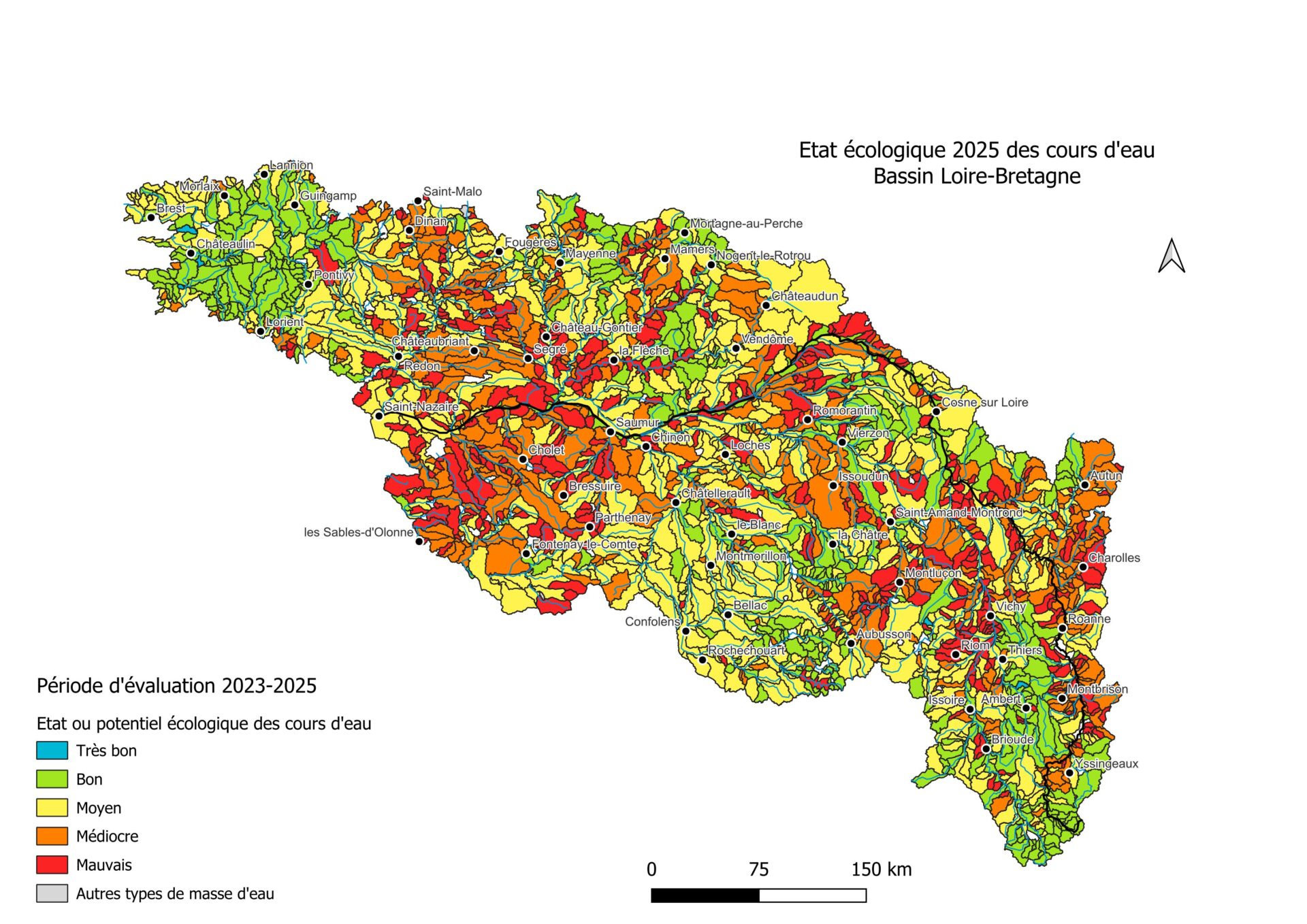 Afficher la carte de l’état des masses d’eau sur le bassin Loire-Bretagne